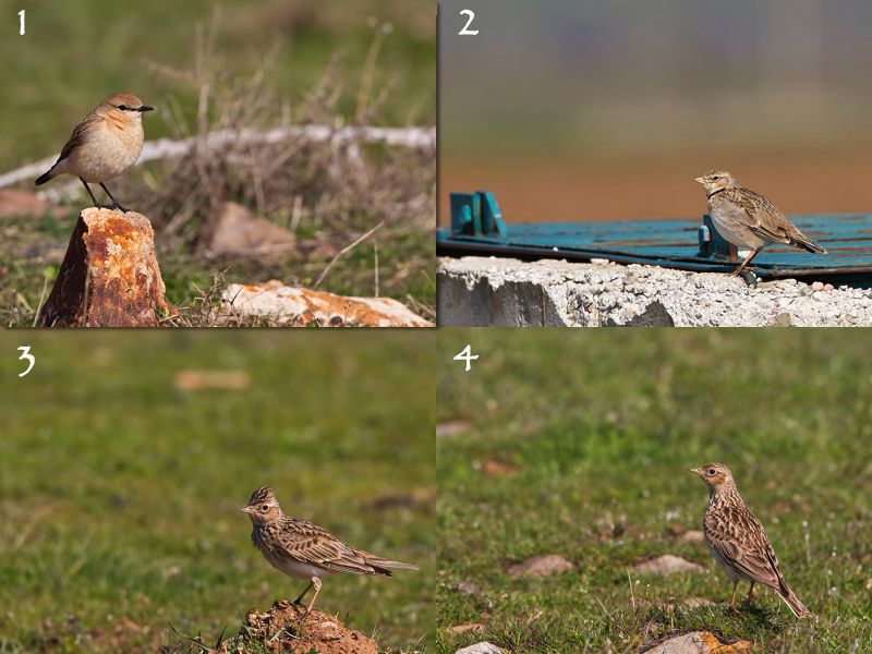 Tür tahminlerim: 1- Boz kuyrukkakan 2- Boğmaklı toygar 3- Tarlakuşu 4- Tarlakuşu Yorumlarınız için teşekkürler, selamlar.