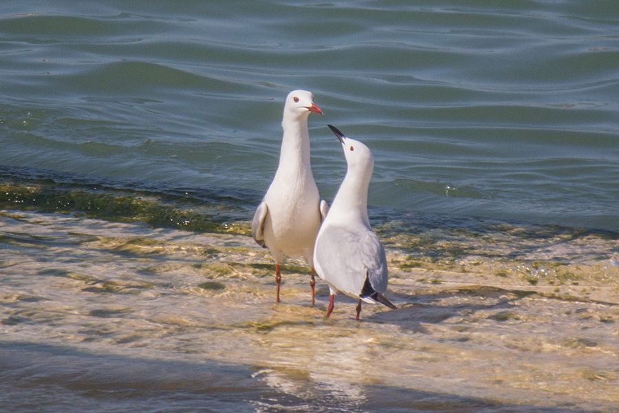 Soldaki martı denizde ardı ardına dalma hareketlerinden sonra bulunduğu yere gelip etraftaki bütün martılara sataşıp kaçırdı. Sonra da bu martının yanına gelip kanatlarını bir miktar açıp etrafında dolandı durdu. Bütün bu hal hareketleri dişiye kendini beğendirme çabası olsa gerek :)