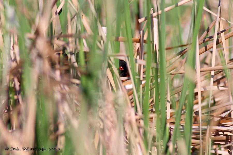 Saatlerce aradıktan sonra ise alabildiğim en iyi karesi bu oldu. Oldukça yoğun sazların içine girmiş ve neredeyse dışarı hiç çıkmıyor. Bulunduğu alanda rahat hareket edebilmek için kasık çizmesi gerekiyor(ya da pantolonu çıkartın sizin tercihiniz:) Bulması gerçekten sorun...Ayrıca sadece hayvanların geçtiği yolları kullanın, yuva dönemi her taraf yuva dolu. Oldukça dikkatli olun aramaya niyetiniz varsa. İlk görüldüğü noktanın 50 metre ilerisindeydi.