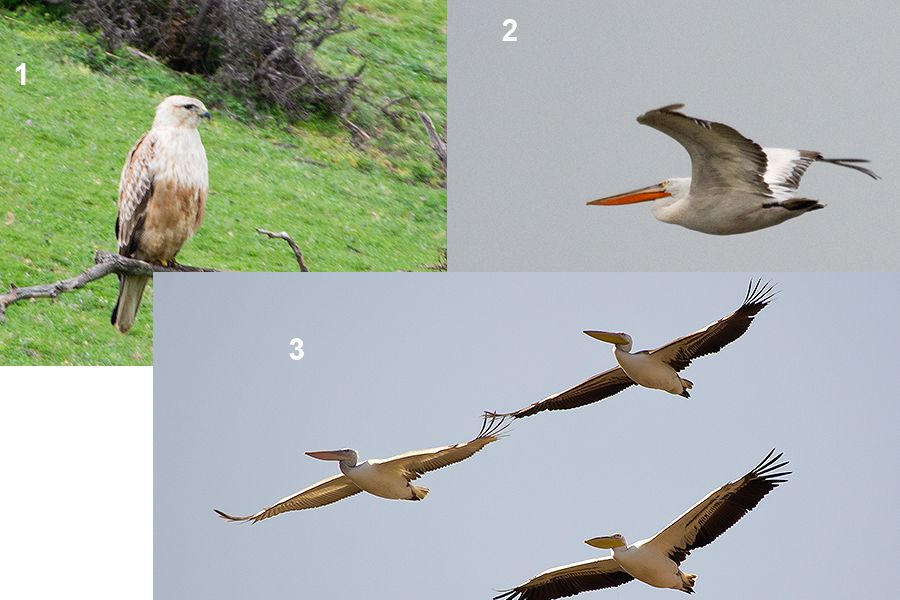 Türler konusunda fikirlerinizi rica ediyorum. 1. Kızıl Şahin ya da Açık Şahin 2. Ak mı? Tepeli mi? 3. Kanatlarında şerit olanlar ak pelikan sanırım.