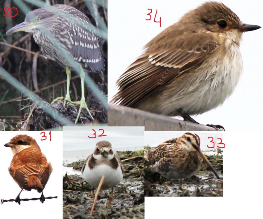 30- Gece balıkçılı (genç) ? 31- Kızıl sırtlı örümcekkuşu ? 32- Halkalı cılıbıt ? 33- Suçulluğu ? 34- Benekli sinekkapan? Kızılırmak deltası
