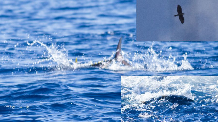 Yolda açıkdenizde (kos adası civarı) martıların ve bir okadar Boz yeklovanların beslendiği denizin kabardığı bir bölgeye denk geldim, Bir şey görünmesede çırpıntıları rastgele çektim, net değil ama bir şeyler görünüyor. beslenen ortadaki balık, besin olan sol alttaki balık olsa gerekir.