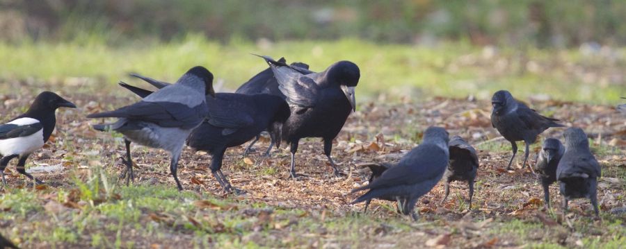 İstanbul\'da Ataköy\'ün konukları ekin kargaları bundan yaklaşık 2 hafta kadar önce yeniden galmeye başldılar. Kışı buralarda geçirip şubat sonu gibi birden kayboluyorlar. Yaklaşık 40 bireylik bir grup gelince yerli gruplarla hemen kaynaşıyor. Fotoğrafta aynı ailenin 4 farklı türü bir arada.