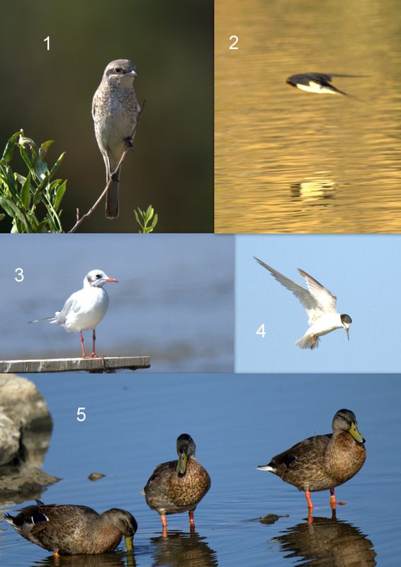 1. Kızılsırtlı örümcekkuşu 2. 3. İnce gaga veya karabaş martı 4. kara gagalısumru 5.