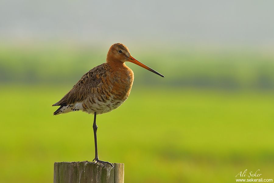 Erişkinin, mavi-gri bacakları ve çok uzun düz ve dibi pembe bir gagası vardır.