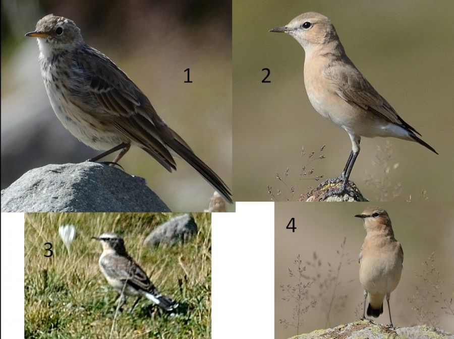 1- Uzun arka tırnak, ince-uzun gaga ve belirsiz kaştan dolayı Çayır incirkuşu diye düşündüm 2 ve 4 Boz Kuyrukkakan