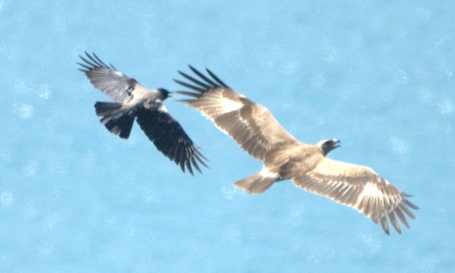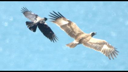 Önceki günün yoğunluğundan sonra bugün sakin bir gün geçirdik diyebilirim. Sabah güney rüzgarıyla başlayan gün öğleden sonra kuzeye döndü. Bu saatten sonra da kuş oldukça azaldı. Belki İç Anadoludaki yağmurlar göçe kısa bir ara verdirmiş olabilir. Bugünün ilginç notları altı birey Küçük Kartalın hepsinin de açık form olması ve erişkin bir Gökdoğanın yakınlardaki uçuş gösterisiydi. Yılan kartalımız avlanmaya bugün de devam etti. Alanın leş kargaları alçak geçen yırtıcılara tacizlerinden vazgeçmediler, yandaki fotoğraf durumu göstermekte. İlginç bir ayrıntı da KOK\'lar karganın tacizinde ıslık benzeri bir ses çıkartıyorlar. Fotoğrafta dikkat edilirse KOK\'un ağzının açık olduğu görülebiliyor. Bu mücadelede ben KOK\'un yanındayım. Göçmen olabilir ama onun binlerce yıllık yolu bu. Selamlar/ Cemil Gezgin