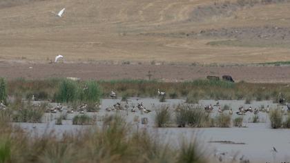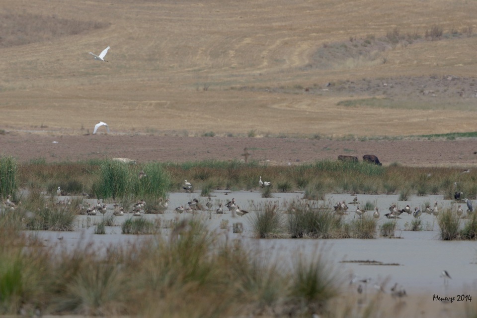 Metin Cenkciler ile Konya yolundan Kozanlıyı hedeflerken, Şöferler Derneği dinlenme tesisileri önünden sağa girip Uyuz gölüne bir bakalım dedik. Bol miktarda sakarmeke, bildik saz deliceleri ve birkaç su kuşu ve ve serinlemeye çelışşan köy delikanlılarını gördükten sonra tekrar yolumuza koyularak, saat 13 gibi Kozanlıya ulaştık. GÜNEŞ TEPEMİZDE, SICAKLIK 36 DERECE, göl çevresini dolaşmaya başladık; gölün giriş bölümünde yer alan küçük taş köprü üzerindeki evcil kazlarla muhabbete gelmiş boz kazlar bizi görünce kaçtılar. Ama onlarcası gölün iç kısımlarında sazlar arasında görülüyordu. İnce gagalı martı ve sumrular arasında Hazar martısı dikkatimizi çekti; çok uzakta olmasına rağmen fotoğrafladık, günün bonusu oldu. Gölün arka kesimleri su çekilmesi ve saz yoğunluğu nedeniyle pek verimli değildi. Saat 16 da gözlemi noktalayarak Ankara\'ya döndük.