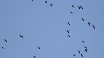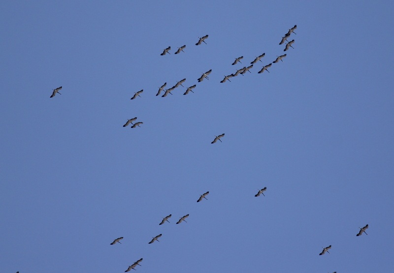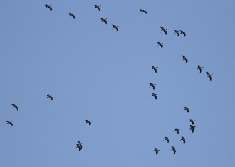 15 dakika sonra çok çok uzaktan sürüler halinde sesler duymaya başladık. Hırkaları atıp turna sesi mi değil mi tartışırken kuşlar hala görünürde yok, ama sesleri çok uzak ve sürünün fazlalığını hissedebiliyoruz.. Ve silüetleri göründü. Uzaktan pozlarını alıp turna hatta telli turna olduklarını karar verdik.Arada telli çıkar diye düşünüp tamamının telli turna çıkması bizi o an hayal mi görüyoruz acaba diye düşündürdü. Ondan sonra film koptu:))