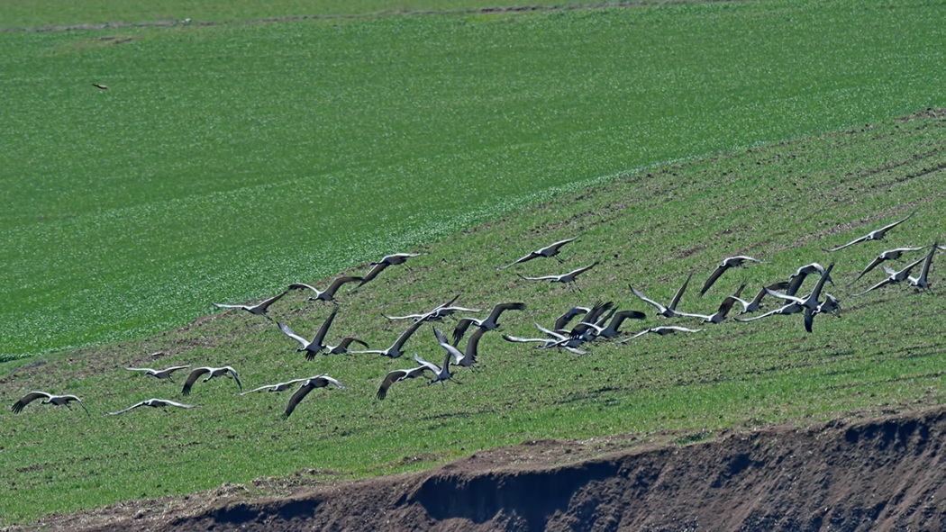 Bugün bir aydır misafirimiz olan 12 adet Telli Turna\'nın haricinde 43 adet daha Telli Turna gördüm.