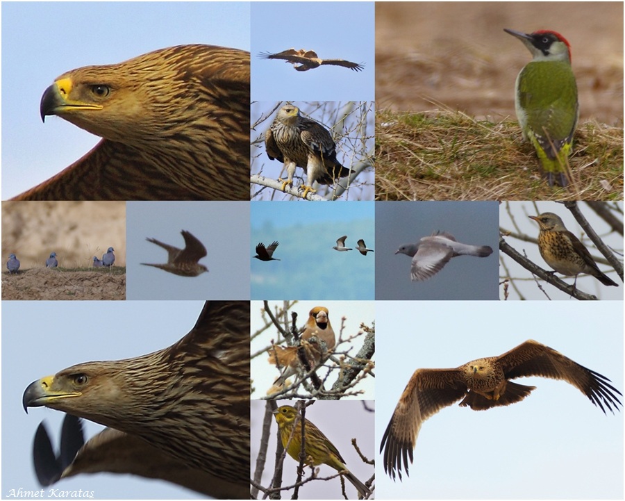 Derken, Menderesin favoriteleri olan Şah Kartallar ve Karaakbabalar. Şahlardan birçok kare aldıysak da Karaakbabalardan bir kare bile çekmeden devam ettik yola. Sanırım, yeni biten Kurban Bayramından kalanlarla epey ziyafet çekmişler ve pek yakın uçmuyorlardı. Yeni türüm Gökçe Güvercinlerden pekçok gördük. Ama hep uzak uzak. Bir gruba biraz yaklaştıysak da bizi fark edip, kaçtılar.