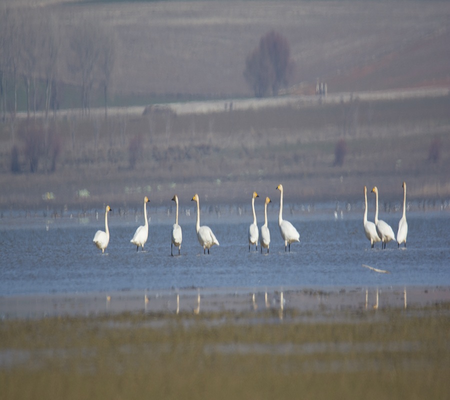 Gölün onur konukları \" Küçük Kuğular \" 56 birey olarak alandaydılar. Şen sesleriyle, diğer kuşlara nazire yaparcasına ötüşüp duruyorlardı. Çavuşçu Göl\'ün görkemli günlerini bilenler için artık bir su birikintisini andıran şu anki hali üzüntü verici olsa da kuşlar alışkanlıklarını devam ettiriyorlar. Çok geç olmadan bu gezegeni diğer canlılar paylaştığımızı hatırlamalıyız... Kuşların da özgürce yaşayabildiği bir dünya sizler gibi benim de umduğumdur.