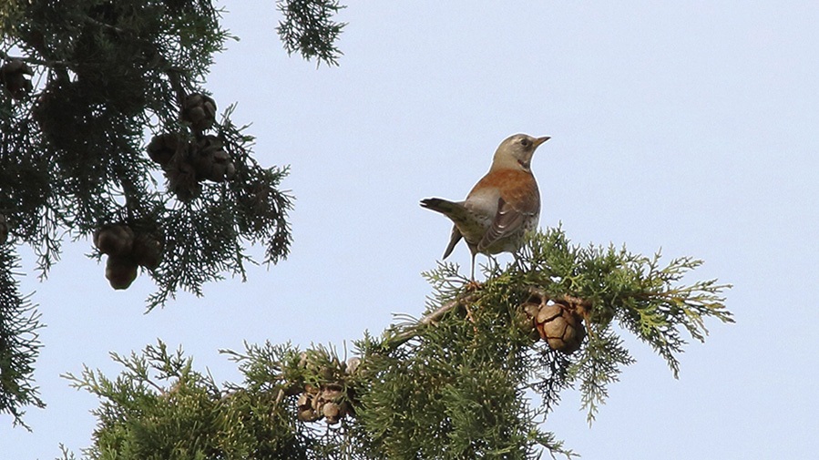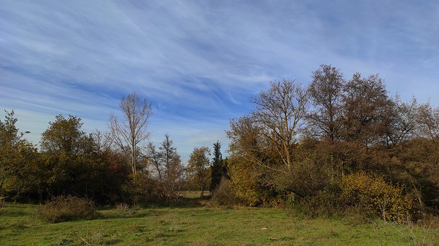 Attığım ilk adımlarla kuşların mesken tuttuğu bir alana girdiğim anlaşılıyor. Geniş çayırın ortasında boyca diğerlerinden yüksek, yaprakları çoktan sararmış kavaklar var. Tepelerinde dolaşanlarsa uzun zamandır görmediğim güzel bir tür olan Tarla Ardıçları. Anlaşılan gelişimden pek memnun değiller, kısa, sert ötüşleri çevrelerindeki diğer türlere göre oldukça baskın. Gene de bu yeşil ağaçkakanın kahkahasını duymama engel olmuyor.