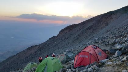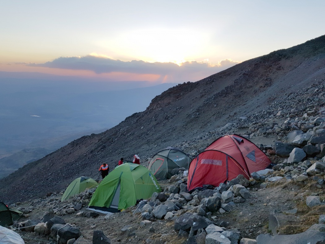 İlk olarak tırmanıştan bahsedeyim. 6 Eylül 2021 tarihinde Doğubayazıt\'tan hareket ederek Çevirme köyüne araçlarla geldik. 2200 metreden başlayan yürüyüşte çevremiz alpin türlerle doluydu. Bazalt ve granit kayalıklardan oluşan volkanik araziyi kullanan yüksek sayıda ötücüye ara sıra sakallı akbabalar, kaya kartalı ve kerkenezler ve bilimum dağ kargası eşlik etti. 3200 metre kampına ulaşıp kampımızı kurduk ve geceyi geçirdik.
